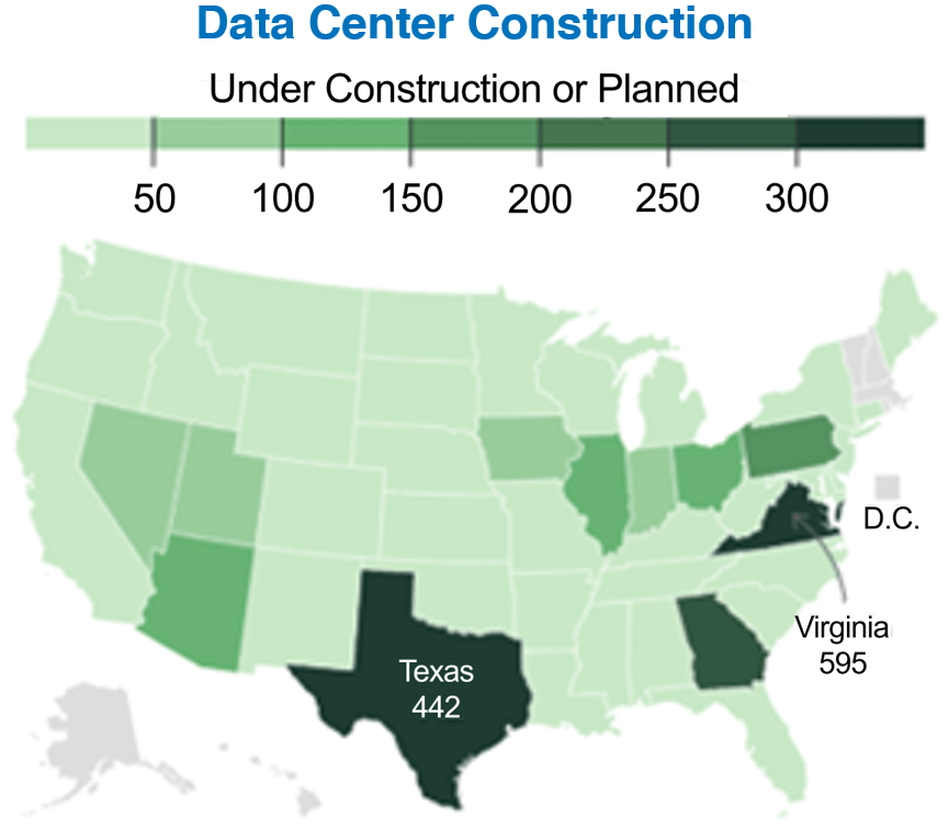 Sources: 1Bernstein. Chart: American Edge Project and Technology Councils of North America. Map: Axios Visuals. Data as of October 29, 2025.