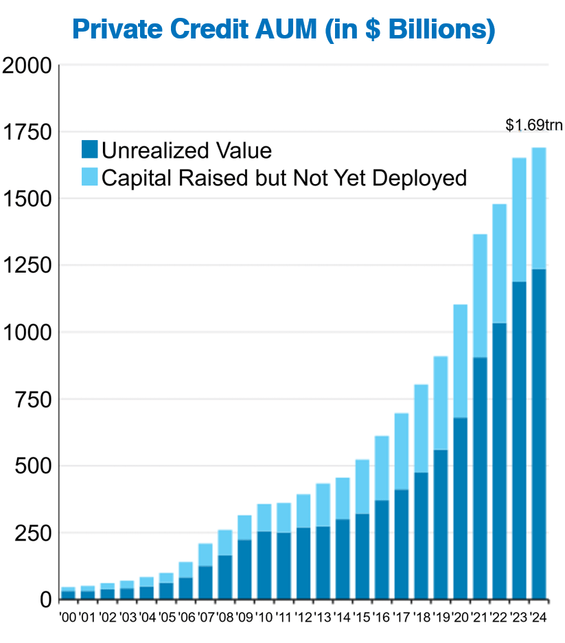 At its core, private credit refers to lending by nonbank institutions directly to borrowers—often through negotiated bilateral or small club arrangements. These lenders structure and originate deals themselves, determining terms on a case-by-case basis. Because the market operates privately, it is inherently less transparent, less liquid, and more fragmented than the public credit universe. Yet despite these constraints, private credit has grown dramatically in recent years. As traditional banks have pulled back from lending in the wake of post-crisis regulation, private credit has stepped in to fill the void, offering customized financing to smaller companies that might otherwise struggle to access capital.