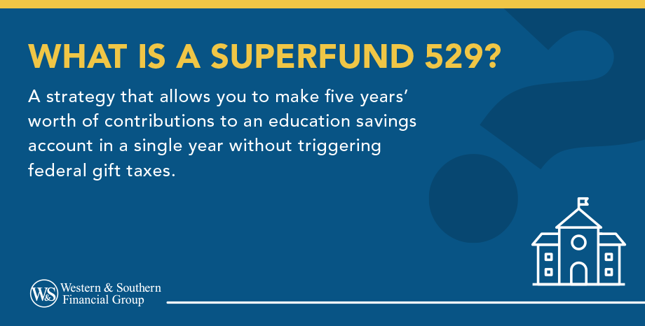 - A superfund 529 plan lets you contribute up to five years of gifts at once without triggering federal gift taxes.