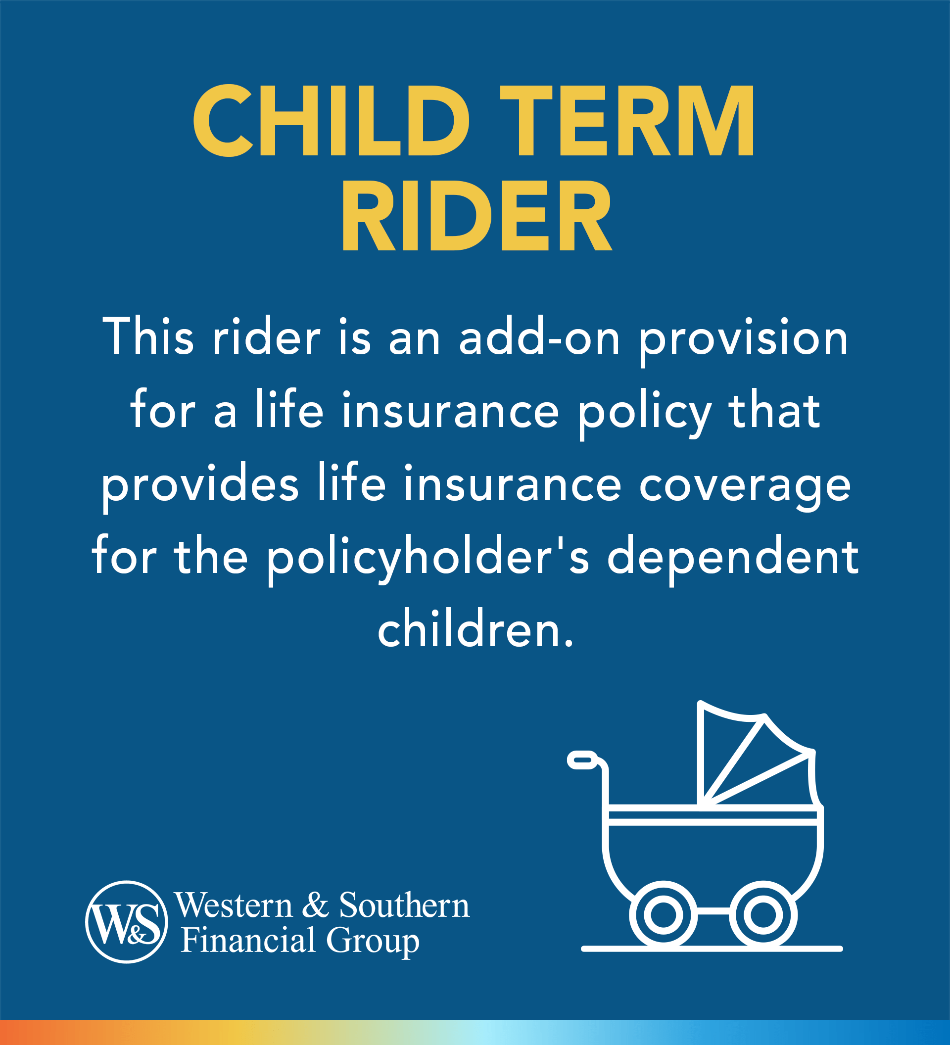 - A child term rider is an affordable add-on to your life insurance policy that provides coverage for your dependent children.