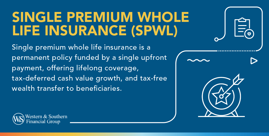 Single premium whole life insurance (SPWL) is a type of permanent life insurance that requires a single initial payment. In exchange, the policyholder receives lifetime coverage with a guaranteed death benefit and a cash value component that grows over time.