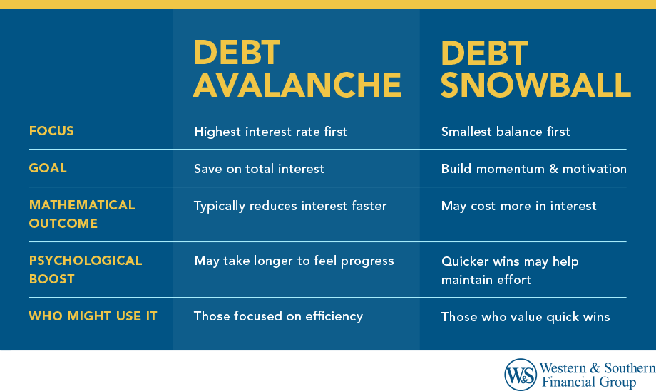 - Some debts, like credit card debt or private student loans, may benefit more from the avalanche method, while smaller personal loans or medical bills may suit the snowball approach.