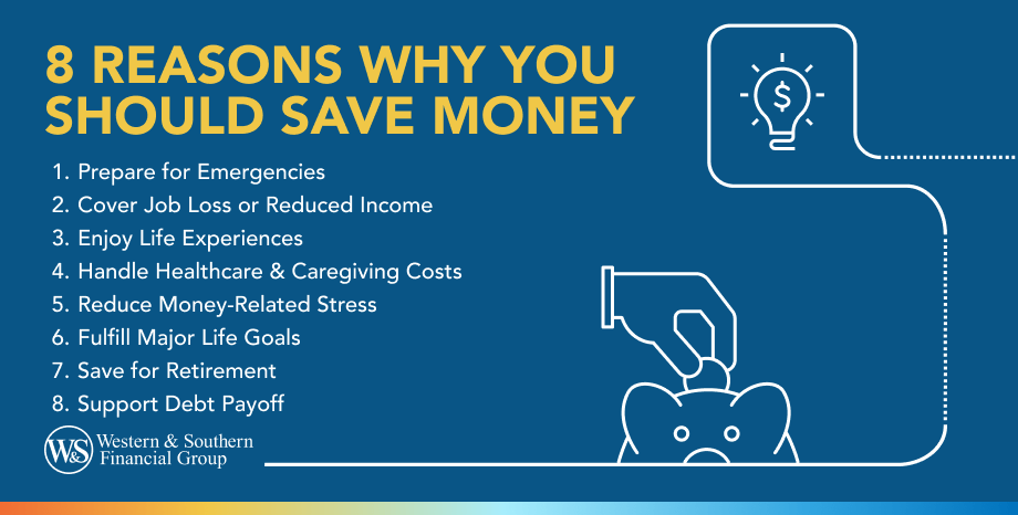 - Saving money helps prepare for both emergencies & planned expenses, reducing your reliance on debt.