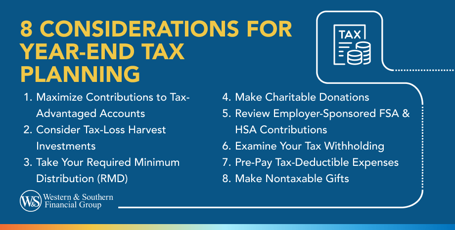 Certain tax laws and IRS rules affect personal finance changes annually - but despite the chance for change, many year-end tax planning tips remain the same. To be sure you're on track to finish the year and begin a new one in good financial shape, consider this year-end tax planning checklist and eight strategies for potentially earning tax breaks for 2025.