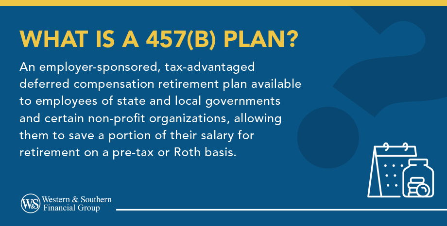 - 457(b) plan is a tax-advantaged retirement plan for government and certain nonprofit employees, allowing pre-tax or Roth after-tax salary deferrals.