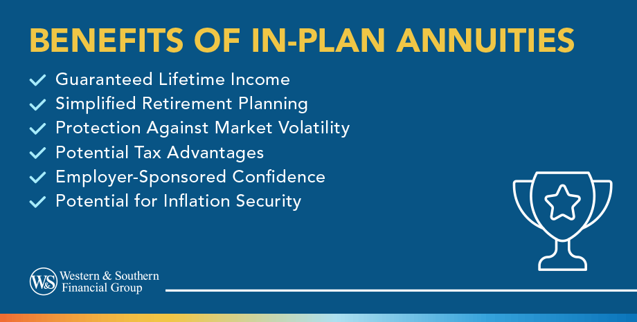 - Guaranteed Income: In-plan annuities can provide a predictable income for life, helping to reduce the risk of outliving your savings.