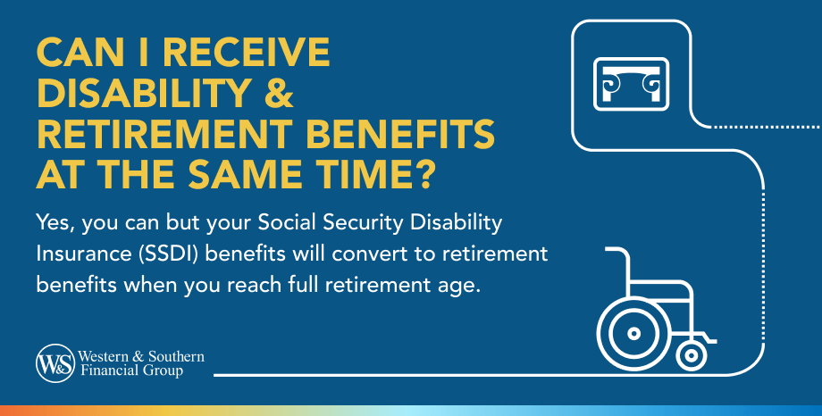 If you receive SSDI before reaching full retirement age, your benefits will automatically convert to Social Security retirement benefits once you reach that age. The amount you receive will not change.3 You will continue to receive the same monthly payment. Only the type of benefit will be different.