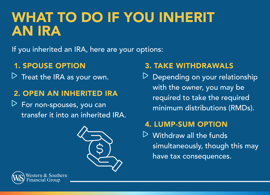- If you are the spouse of the deceased and inherit an IRA, you have more flexible options than non-spouse beneficiaries.