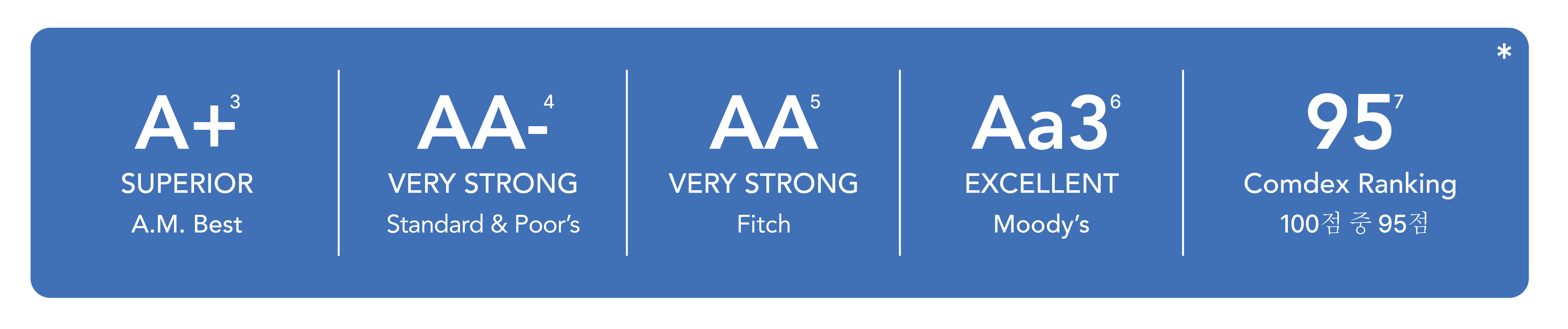 A.M. Best의 지속적인 보험금 지급 능력 평가에서 A+등급 획득(13개 등급 중 두 번째로 높은 등급을 2009년 6월 이래 유지)